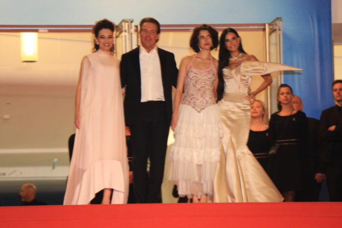 Et pour finir la journée, le délégué général, Thierry Frémaux a soigné la tendance à l’endormissement des Festivaliers. Pas de film asiatique aux combats toujours spectaculaires (City of Darkness) mais un film d’épouvante sur la quête de l’éternelle jeunesse, THE SUBSTANCE de Coralie Forgeat. Ce traitement permet de « générer une autre version de vous-même, plus jeune, plus belle, plus parfaite… Il suffit de partager le temps : une semaine pour l’une et une semaine pour l’autre. Un équilibre parfait sur 7 jours ». Oui, mais voilà, si l’une des deux entités, Demi Moore ou Margaret Qualley, rompt ce fragile contrat, les deux ne faisant qu’une, alors c’est tout le processus qui déraille. Surtout quand le patron de la chaîne campé par Dennis Quaid met la pression su la plus jeune, plus belle et plus parfaite… Dans la veine de Titane qui avait valu à Julia Ducournau, une palme d’or. On en est encore loin tout de même…
