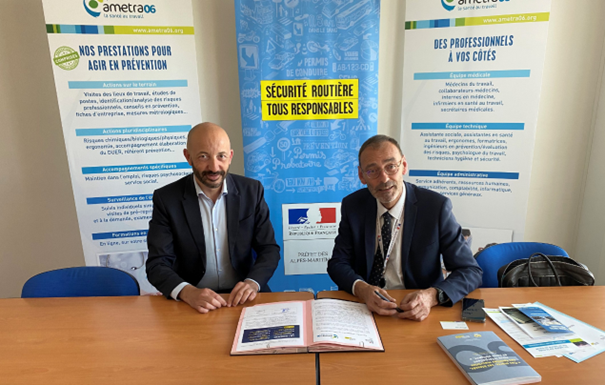 Mercredi 26 avril 2023, l’Ametra06, service de prévention et de santé au travail des Alpes-Maritimes, a signé la charte des « 7 engagements pour une route plus sûre » de la sécurité routière en présence de Benoît Huber, directeur de cabinet du préfet des Alpes-Maritimes et Nadia Hulin, coordinatrice départementale de la sécurité routière.