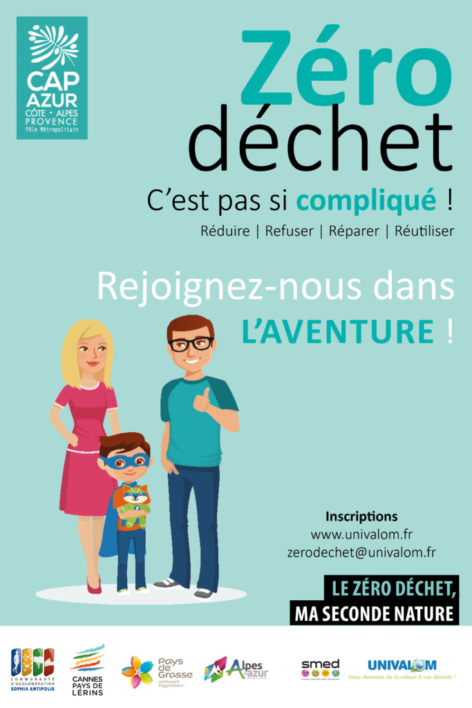 Depuis 2017, l’Agglomération Cannes Lérins – en charge de la collecte et de la gestion des déchets – en partenariat avec les syndicats de traitement des déchets SMED et UNIVALOM mettent en œuvre des actions de sensibilisation pour réduire la production de déchets sur le bassin de vie.