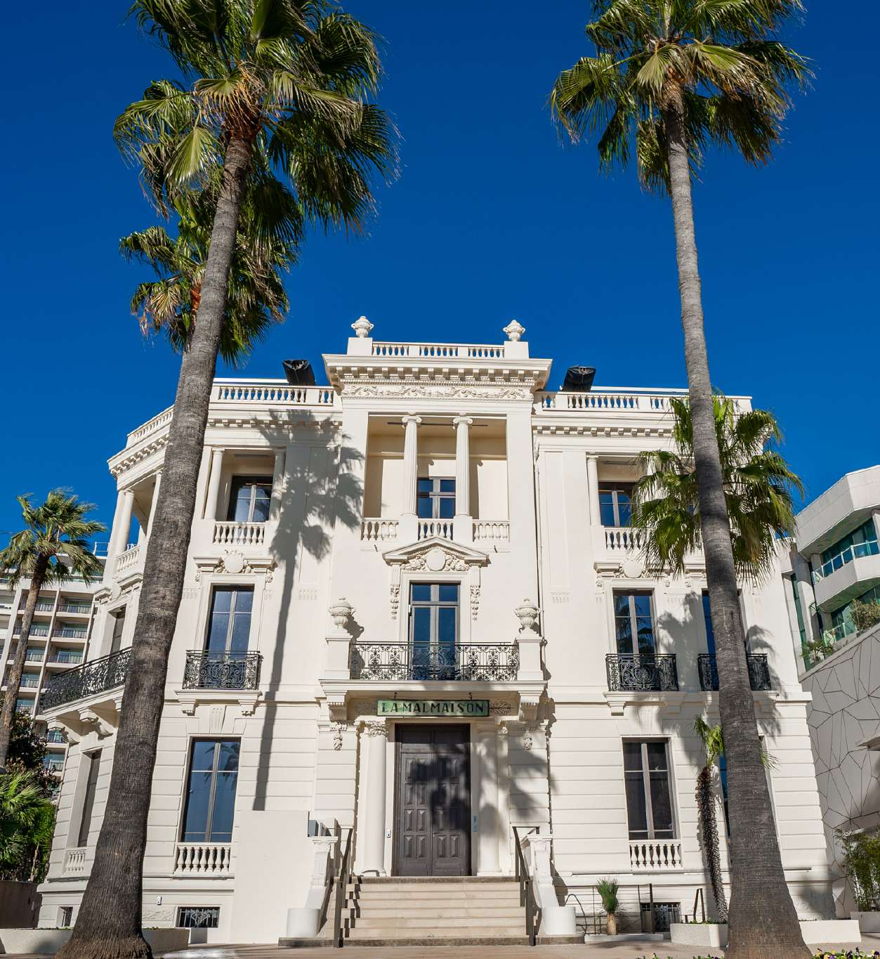 La Malmaison, situé sur la Croisette à Cannes, un édifice patrimonial bâti en 1864 par les architectes Vianey et Blondel et reconstruit en 1901, est le dernier témoin de la Belle Époque sur la Croisette. La Malmaison a vu le jour en tant que villa annexe du Grand Hôtel (aujourd’hui Le Mondrian). Entourée de bâtisses remarquables telles que l’hôtel Le Carlton, le Casino municipal (détruit en 1979) ou encore le Martinez, la Malmaison a depuis toujours été au cœur de l’effervescence cannoise, consacrée aux divertissements et mondanités locales. En 1970, le site devient une propriété communale. La Mairie dédie alors ce pavillon à l’accueil d’expositions d’art contemporain. Afin d’améliorer l’expérience des visiteurs et offrir au centre d’art la dimension internationale qu’il mérite, la municipalité a engagé en juillet 2023 la modernisation de ce lieu chargé d’histoire, dans le respect de son identité. Cette opération d’envergure s’inscrit dans le cadre du projet de mandat de David Lisnard et la poursuite du programme « La Croisette réinvente sa légende ». Elle a été confiée au groupement comprenant les entreprises Seeta, Wilmotte & Associés, Betek Ingénierie et Axima Concept. Son objectif : préserver l’élégance et le charme de cette villa cannoise tout en l’inscrivant dans une perspective et des exigences muséales contemporaines.