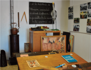 Pour clôturer cette belle trilogie, il n’y a plus qu’à emprunter le « Passage Font Bertrane » qui débouche directement sur les grilles vertes de la Maïoun deï Granouïé, du nom de l’association des anciens qui perpétuent depuis plus de 20 ans les traditions villeneuvoises. Leï Granouïé, selon la légende, désignait en provençal le héron prédateur de grenouilles, celles-ci proliférant autrefois dans le Loup. Aménagé dans l’ancienne bibliothèque au village, ce pittoresque musée a été divisé en trois salles : l’une présente la vie agricole au siècle dernier, Villeneuve-Loubet étant une commune où l’agriculture tenait une large place, une autre est une classe d’école reconstituée à l’ancienne avec son alignement de vieux pupitres, dont certains datent d’avant la deuxième guerre mondiale, tandis que la dernière salle nous plonge dans l’ambiance d’une vieille cuisine provençale dotée d’un poêle central et enrichie de documents d’archives… Dans la cour du Musée, l’installation récente d’une Boîte à livres permet aux habitants de se «nourrir » de connaissances en toute liberté. Pour que cette mémoire, bien vivante, continue de perdurer…