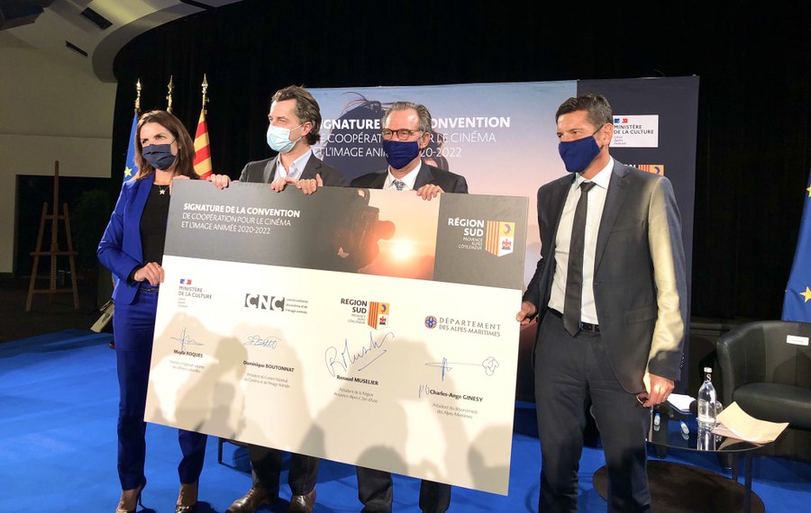 Le président de la Région Sud, Renaud Muselier, était présent à Cannes pour se rendre compte du dynamisme de la cité du cinéma et pour signer un contrat quasi « historique » avec le Centre National de la Cinématographie (CNC) en présence de son président, Dominique Boutonnat.