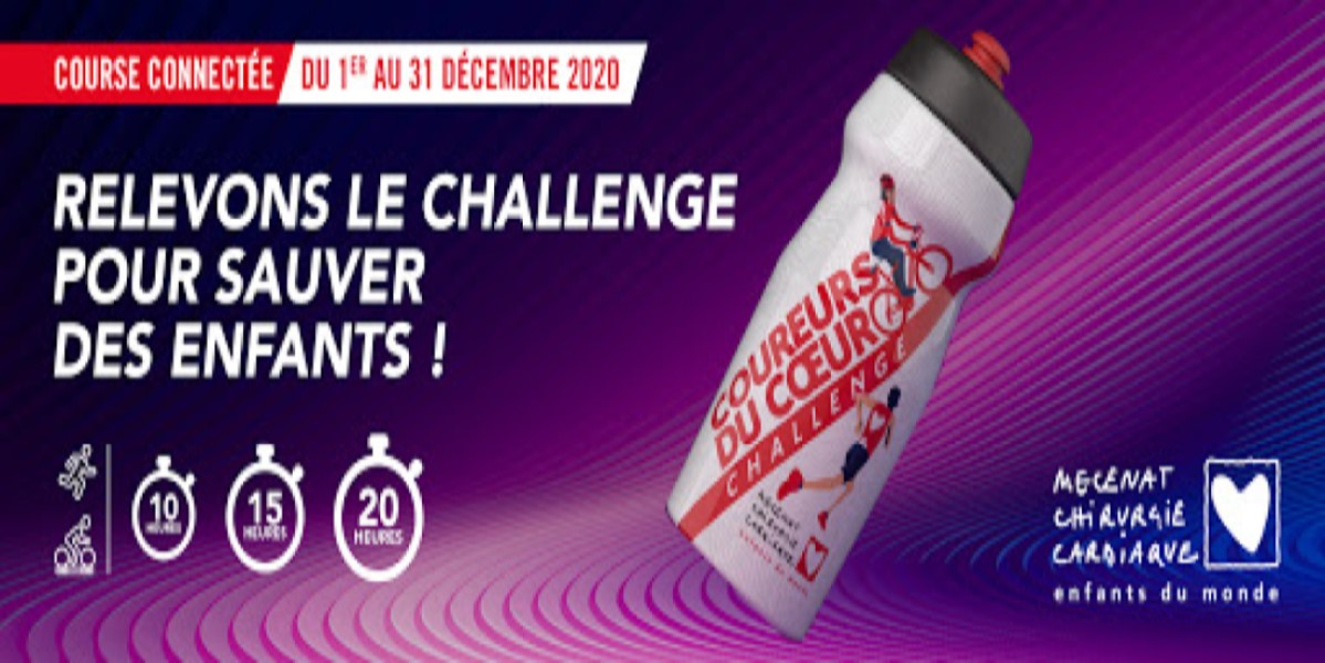En ce mois de Décembre si particulier, il n’y aura peut-être pas de grande réunion de famille ou de manifestation collective mais il y aura un bel élan de solidarité pour les enfants cardiaques. Avec le Coureurs du Cœur Challenge, Mécénat Chirurgie Cardiaque souhaite connecter un maximum de personnes autour d’une même cause. Le principe est simple : chaque participant choisi son challenge : 10H, 15H ou 20H.