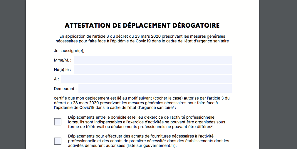 Suite à l’augmentation des restrictions, liées au confinement, annoncées par le Premier ministre Edouard Philippe, de nouvelles attestations ont été mis en place.