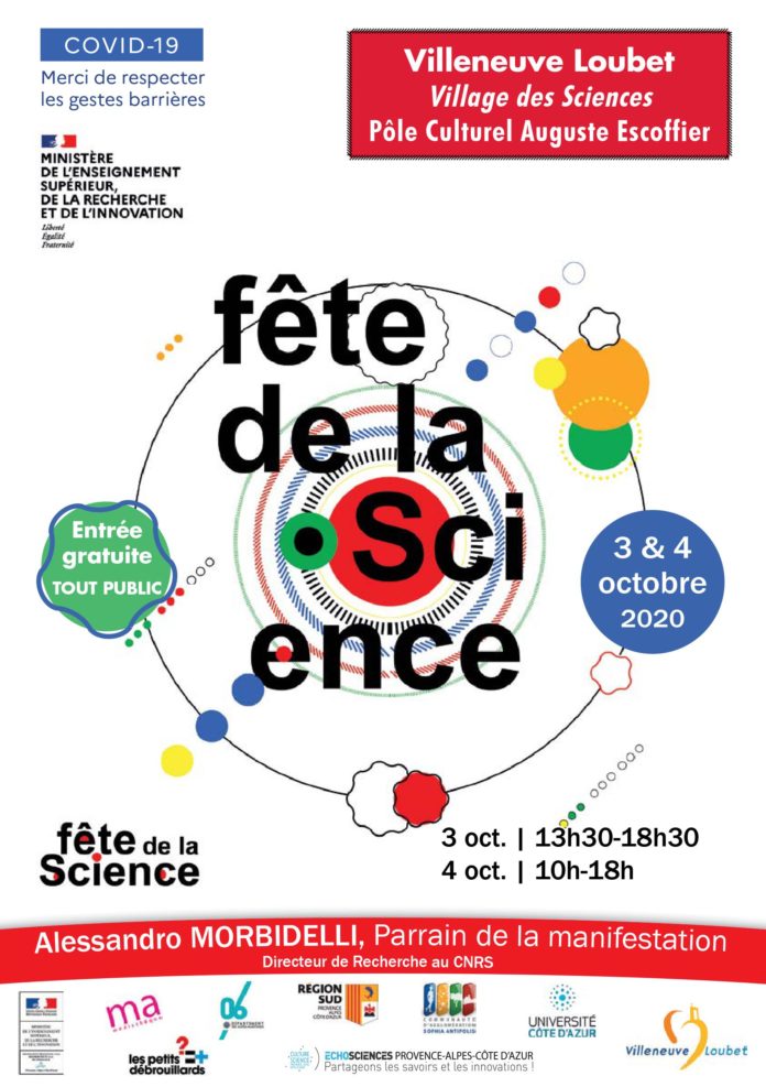 De nombreux stands seront présents à la Fête de la Science LES 03 ET 04 OCTOBRE 2020 : Village des Sciences de Villeneuve Loubet – Pôle Culturel Auguste Escoffier, 30 allée Simone Veil.