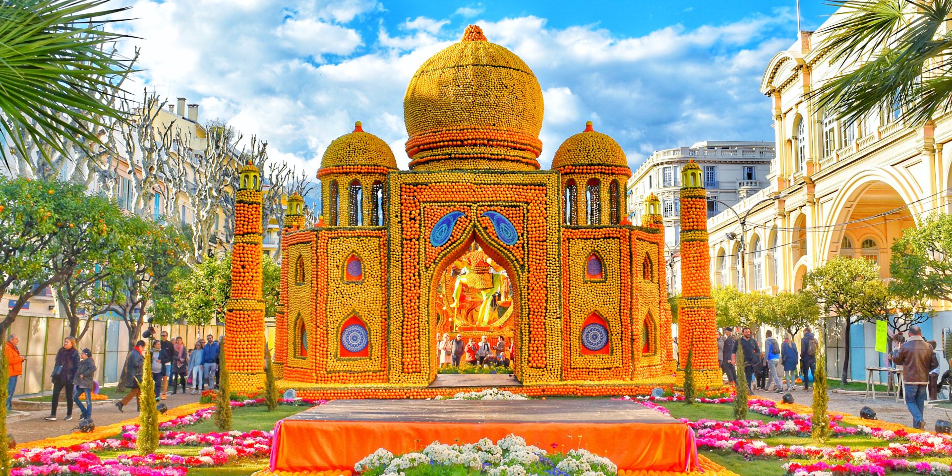 Le contraste entre les couleurs vives des agrumes et le bleu hivernal de la Méditerranée confère à l’événement une atmosphère singulière, devenue l’une des signatures visuelles de la Riviera.