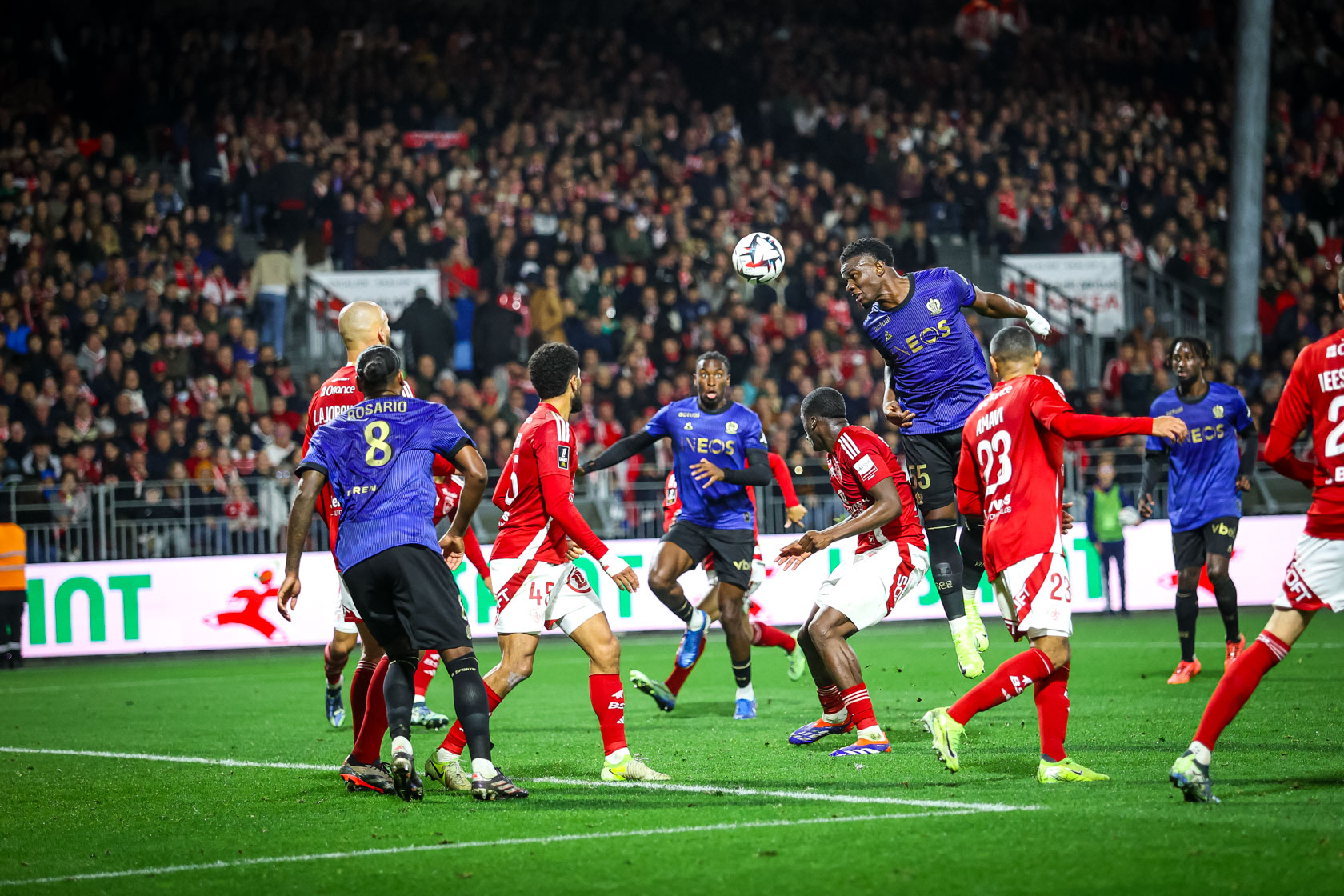 Dès l’entame du match, Brest fait souffler le tonnerre avec un tir de Lees-Melou mais cela ne durera pas plus que quelques minutes car la 1ère mi-temps allait être entièrement sous la domination des Niçois. En attaque, le trio Boga-Cho-Guessand faisait souffrir l’arrière-garde Brestoise submergée par la vivacité des Aiglons. Mais le score demeurait vierge 0 à 0… jusqu’à la 37’. Sur une longue ouverture d’Abdelmonem pour Abdi (qui n’en finit plus de surprendre) qui contrôle de la poitrine et transmet un centre parfait pour Cho qui bat Bizet. Mais l’arbitre, M. Turpin (se souvenir de Monaco et Lyon l’an passé…) allait annuler le but pour un hors-jeu de position de Guessand qui avait aussi commis une petite faute sur Bizet, le goal Brestois. Mais ce n’était que partie remise tant la domination de Nice à ce moment-là était prégnante. Exactement, 5mn plus tard, à la 42’, le même Abdi centrait pour Guessand qui se rachetait en taclant devant les buts de Bizet, battu. Il marque là son 6e but de cette saison. 1 à 0, ce sera le score à la mi-temps. Même Eric Roy, l’entraîneur Brestois, admettait que cet avantage était mérité et qu’il aurait pu être plus conséquent…