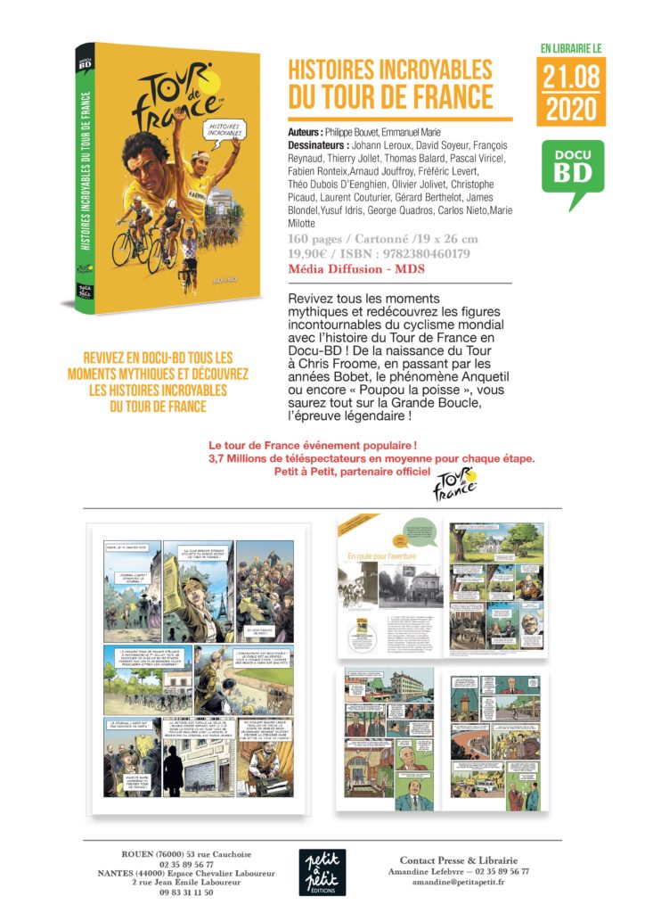 Le livre Histoires incroyables du Tour de France est écrit par Philippe Bouvet et Emmanuel Marie – Les Éditions Petit à petit. Depuis 1903, le Tour de France fait vibrer les passionnés et déclenche des marées humaines à chacune de ses étapes. C’est l’événement le plus attendu de l’année, celui qui nous fait découvrir de splendides paysages et trembler pour nos champions.